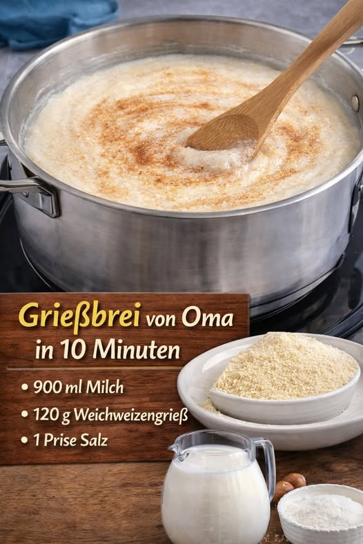 Danach den Weizengrieß unter Rühren mit einem Schneebesen einrieseln lassen und nochmals aufkochen lassen.