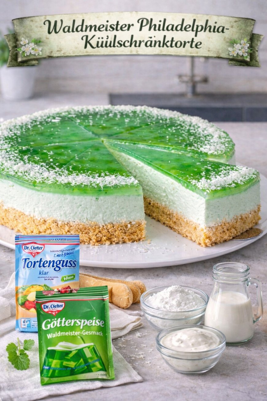 Diese erfrischende Waldmeister-Philadelphia-Kühlschranktorte ist der perfekte Kuchen für warme Tage, Feiern oder als leichter Nachtisch nach einem guten Essen. Sie überzeugt durch ihre harmonische Kombination aus knusprigem Keksboden, einer luftigen, cremigen Frischkäsefüllung und einer glänzenden, aromatischen Waldmeister-Götterspeise-Schicht. Das Beste daran: Der Kuchen kommt ganz ohne Backofen aus und lässt sich hervorragend vorbereiten. Nach einigen Stunden im Kühlschrank ist er perfekt durchgekühlt, schnittfest und wunderbar erfrischend.