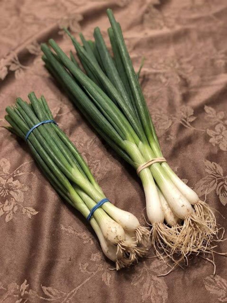 Frühlingszwiebeln und Lauchzwiebeln sind im Grunde dasselbe Gemüse, nur die Namen variieren je nach Region. Es handelt sich um junge Zwiebeln, die geerntet werden, bevor sich eine voll entwickelte Knolle gebildet hat. Dadurch haben sie einen schlanken, weißen Stiel und lange, hohle grüne Stängel. Ihr Geschmack ist frisch und mild, mit einer sanften Zwiebelschärfe, die nicht zu scharf ist. Beide Teile sind essbar: Der weiße Teil hat einen kräftigeren Geschmack, während die grünen Spitzen weicher und zarter sind. Diese Zwiebeln sind beliebt in Salaten, Salsas und Sandwiches und eignen sich, wenn sie nur kurz angebraten werden, auch hervorragend für Suppen, Omeletts, Wokgerichte und Nudelgerichte.