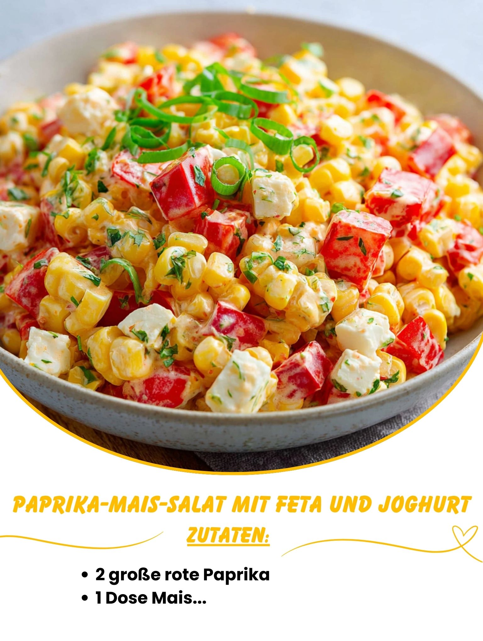 Mais, Paprika und Feta in eine große Schüssel geben.