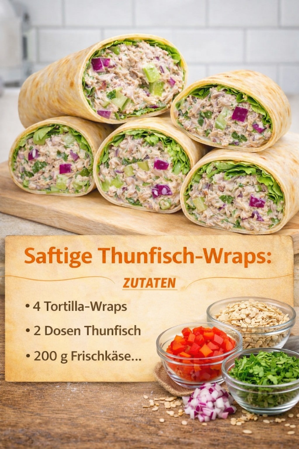 Eine besonders köstliche Variante sind Thunfisch-Wraps mit cremiger Frischkäsefüllung und frischem Gemüse. Sie vereinen eine angenehme Frische, eine cremige Konsistenz und einen herzhaften Geschmack, der viele Menschen begeistert. Außerdem sind sie ideal für verschiedene Situationen: als leichtes Mittagessen, als Snack im Büro oder sogar als schnelles Abendessen.