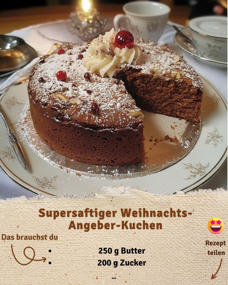 Besonders schön ist, dass er sich wunderbar vorbereiten lässt: Einmal gebacken, bleibt er mehrere Tage frisch und wird mit der Zeit sogar noch aromatischer. Wer ihn festlicher gestalten möchte, überzieht ihn nach dem Abkühlen mit einer glänzenden Schokoladenglasur oder bestäubt ihn einfach klassisch mit etwas Puderzucker.Ein Stück dieses duftenden Kuchens, eine heiße Tasse Tee oder Kaffee – und schon zieht ein Hauch von Weihnachten in die Küche.