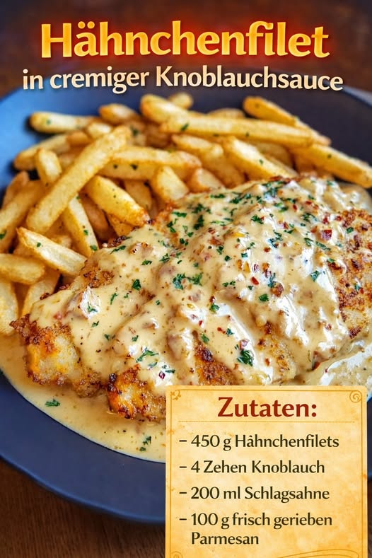 Mit Kräutern garnieren und mit Pommes, Reis oder frischem Baguette servieren.